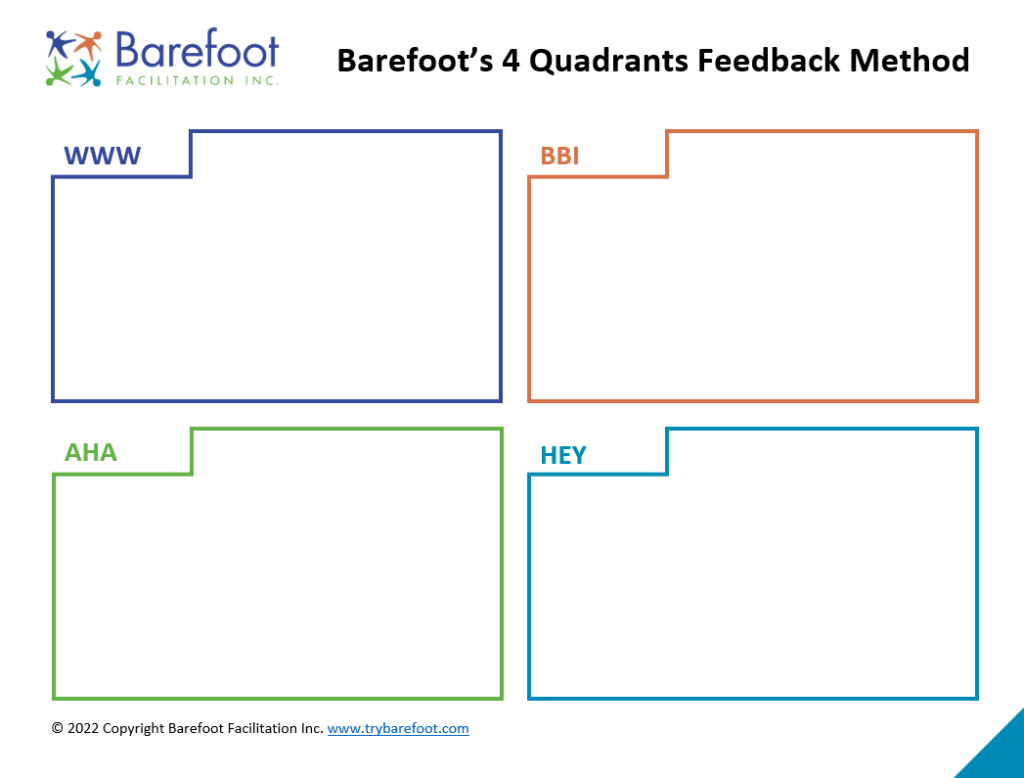 - WWW = What worked well? (something/things that helped me to have a positive and productive experience was/were _________________) opportunity for positive feedback
